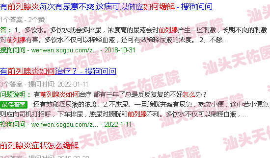 汕头某患者,50多岁,慢性前列腺炎近6年。他的名字出来后,见面后没说几句话,他先跑去厕所,那叫一脸难过,我没有去安慰他,因为我知道,治愈疾病,根除疾病,才是*大的安慰。