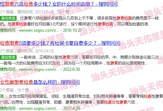 嗨。6次性激素测试花费超过200美元。B超大概四五十个*可以做,总共大概有三百来个,检查*快,半个小时左右*可以做。但性激素检查*好在早晨空腹验血*。