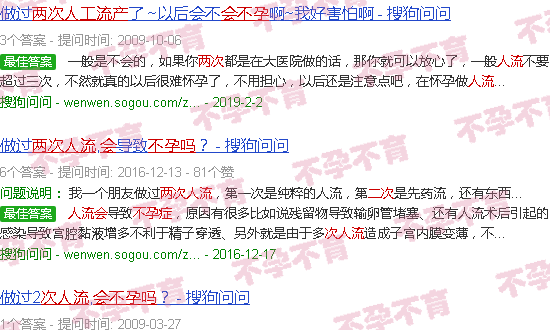 导致继发性不孕症的发生。多次流产的女性经常会反复流产,如果*次流产是由于异常怀孕或疾病,两次怀孕之间的间隔越长,*会发生第二次流产。